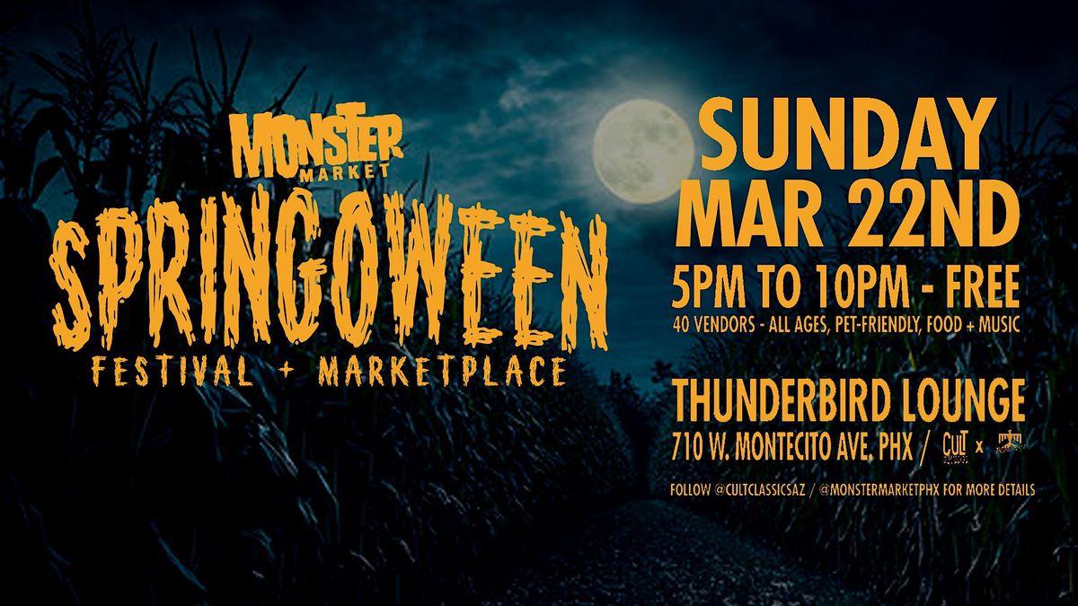 Monster Market returns with our first SPRINGOWEEN FESTIVAL and Night Market at Lyceum Park at Thunderbird Lounge in Phoenix on Sunday March 22nd from 5pm to 10pm! Shop locally fwith 40+ vendors – FREE, all-ages, pet-friendly – tag your friends and save the date! PLUS a screening of NIGHT OF THE LIVING DEAD hosted by Muerte Subite Media
