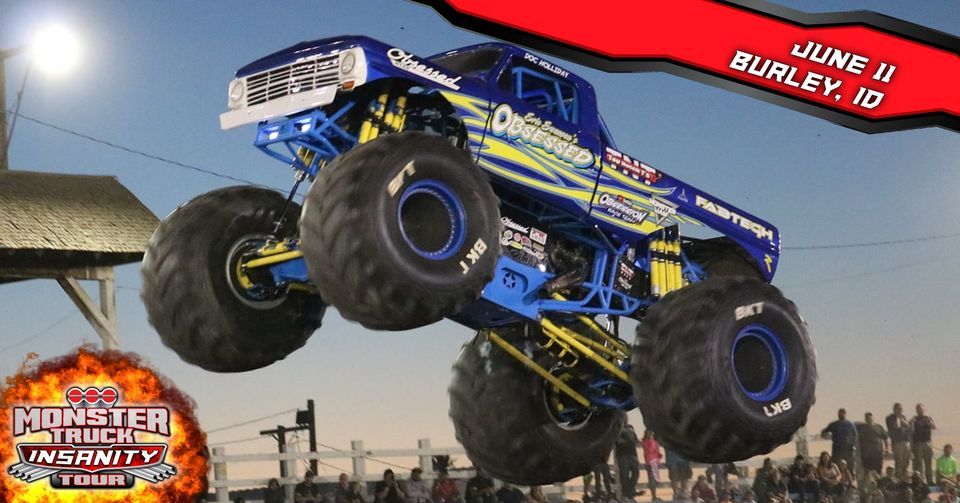 THE MONSTER TRUCK INSANITY TOUR RETURNS TO THE CASSIA COUNTY FAIRGROUNDS IN BURLEY, IDAHO FOR 1 HUGE SHOW ON SATURDAY, JUNE 11, 2022!!The Monster Truck Insanity Tour will turn the Cassia County Fairgrounds in Burley into a BATTLEGROUND with 1 HUGE show on Saturday, June 11th! Don't miss these awesome MONSTERS compete in tailgate dragging, Insanity Style two wheel skills, Battle Bracket style racing, and insane high flying, mud flinging Freestyle!