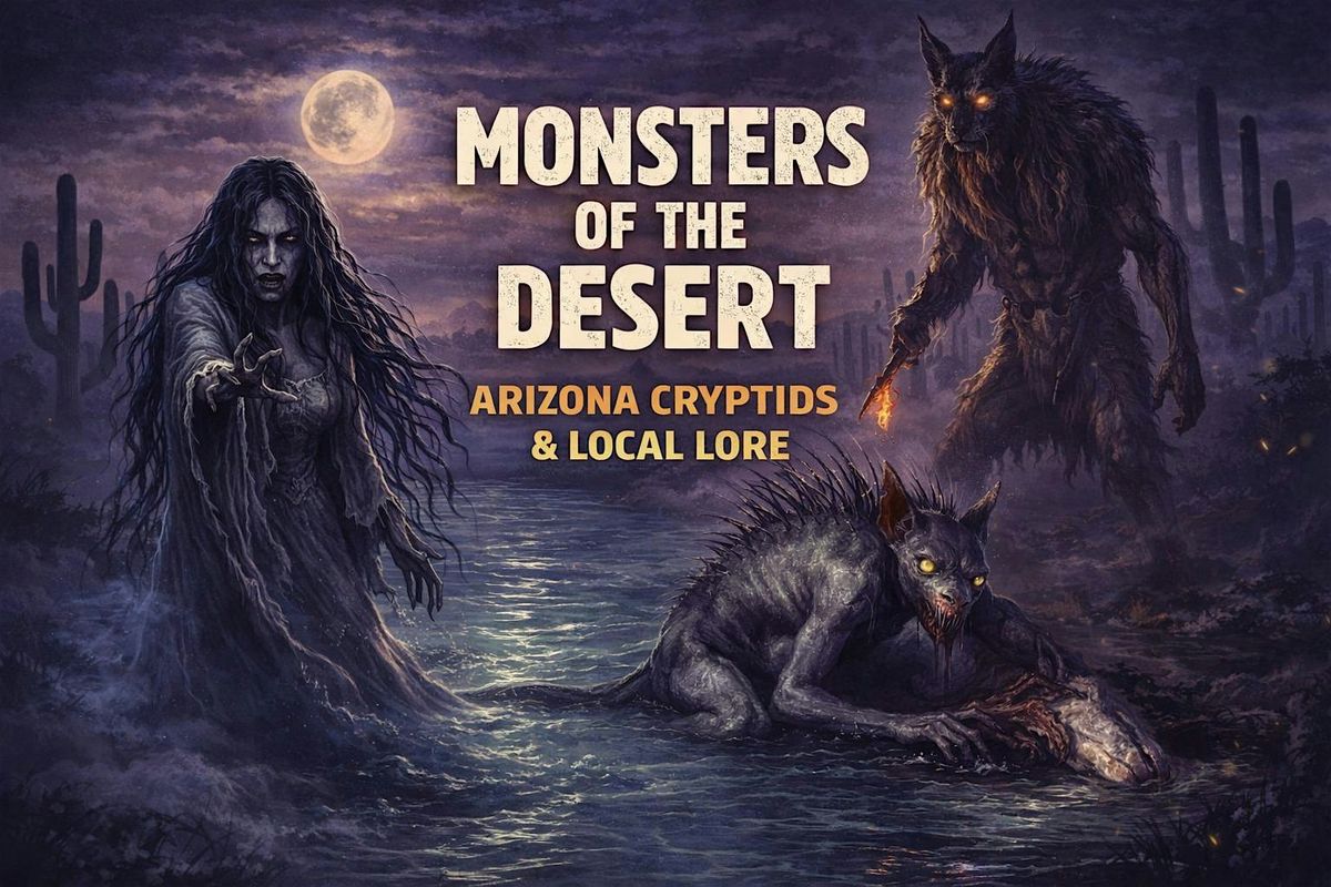 In this immersive Coffee Talk, we’ll explore the cryptids and folklore woven into Arizona’s history — the Mogollon Monster, Skinwalkers, La Llorona, the Chupacabra, the Red Ghost, and more.