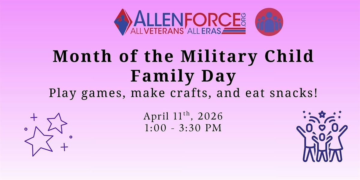 Bring your loved ones for an afternoon filled with activities, games, and great company. Recommended for ages 5-12 but everyone is welcome. It's a perfect chance to connect, have fun, and honor our military kids together. See you there!