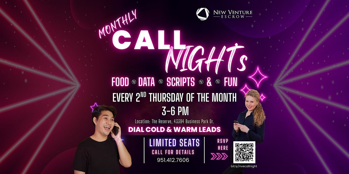 Join us every 2nd Thursday of the month for Monthly Call Night at New Venture Escrow, a focused, high energy prospecting session designed to help you build momentum in your business.