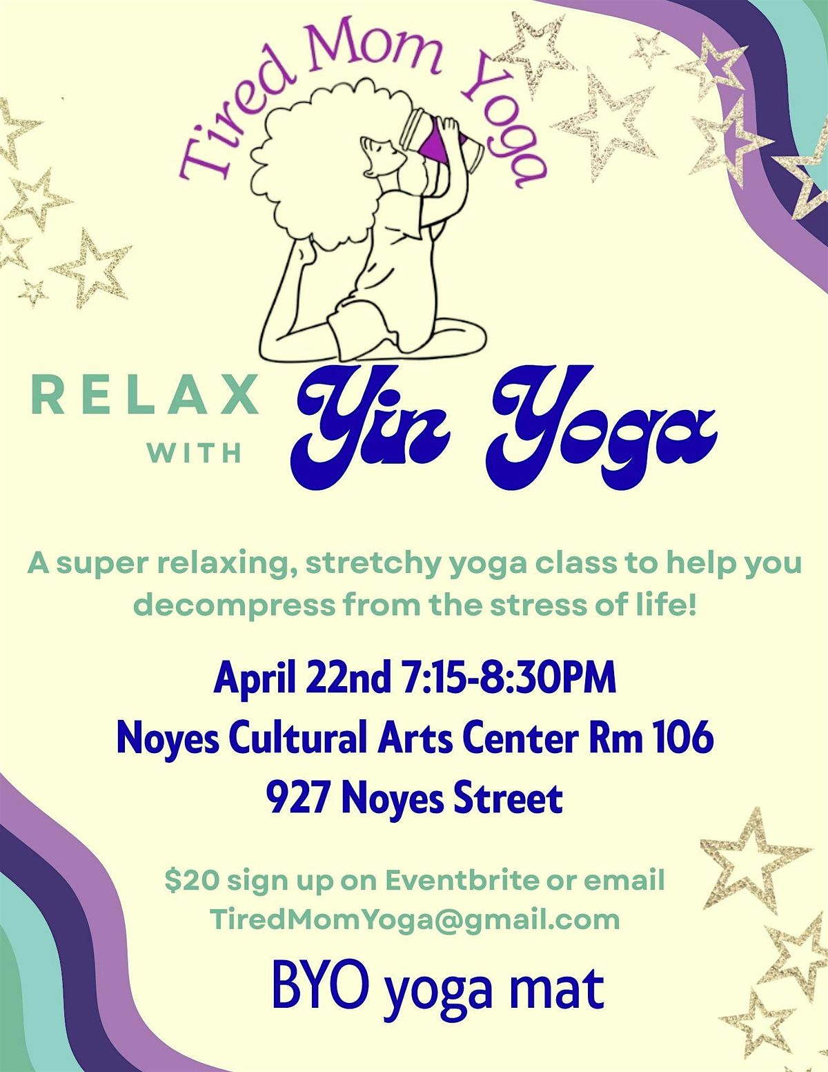 Enjoy a relaxing evening with Yin Yoga. Like all of the Tired Mom Yoga classes, just come as you are and get ready to chill, no stress.About this Event