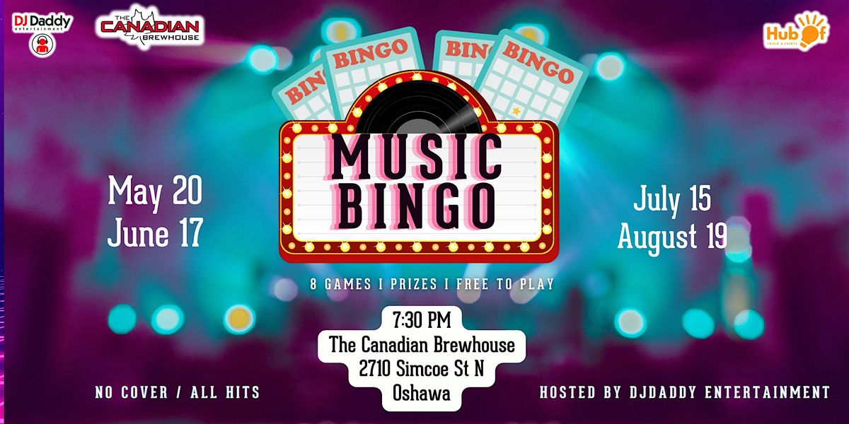 We're bringing MUSIC BINGO to The Canadian Brewhouse (Oshawa Location) once a month at 7:30 and you can't miss this! 8 rounds of "Hey I know this one" and "This song still slaps" with some seriously cool prizes.