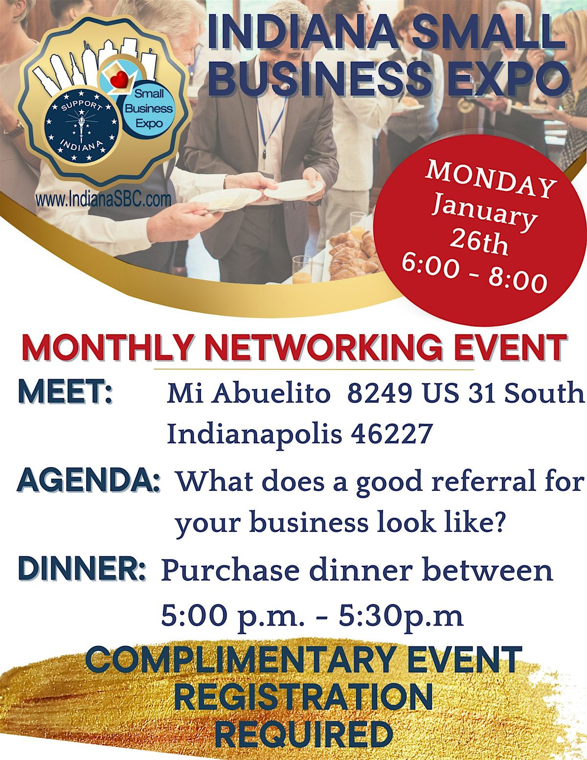 Get ready to network, learn, and tell us what a great referral looks like for your business at our monthly event! Mi Abuelito Mexican Restaurant, located at 8249 U.S. 31 South, Indianapolis, 46227.