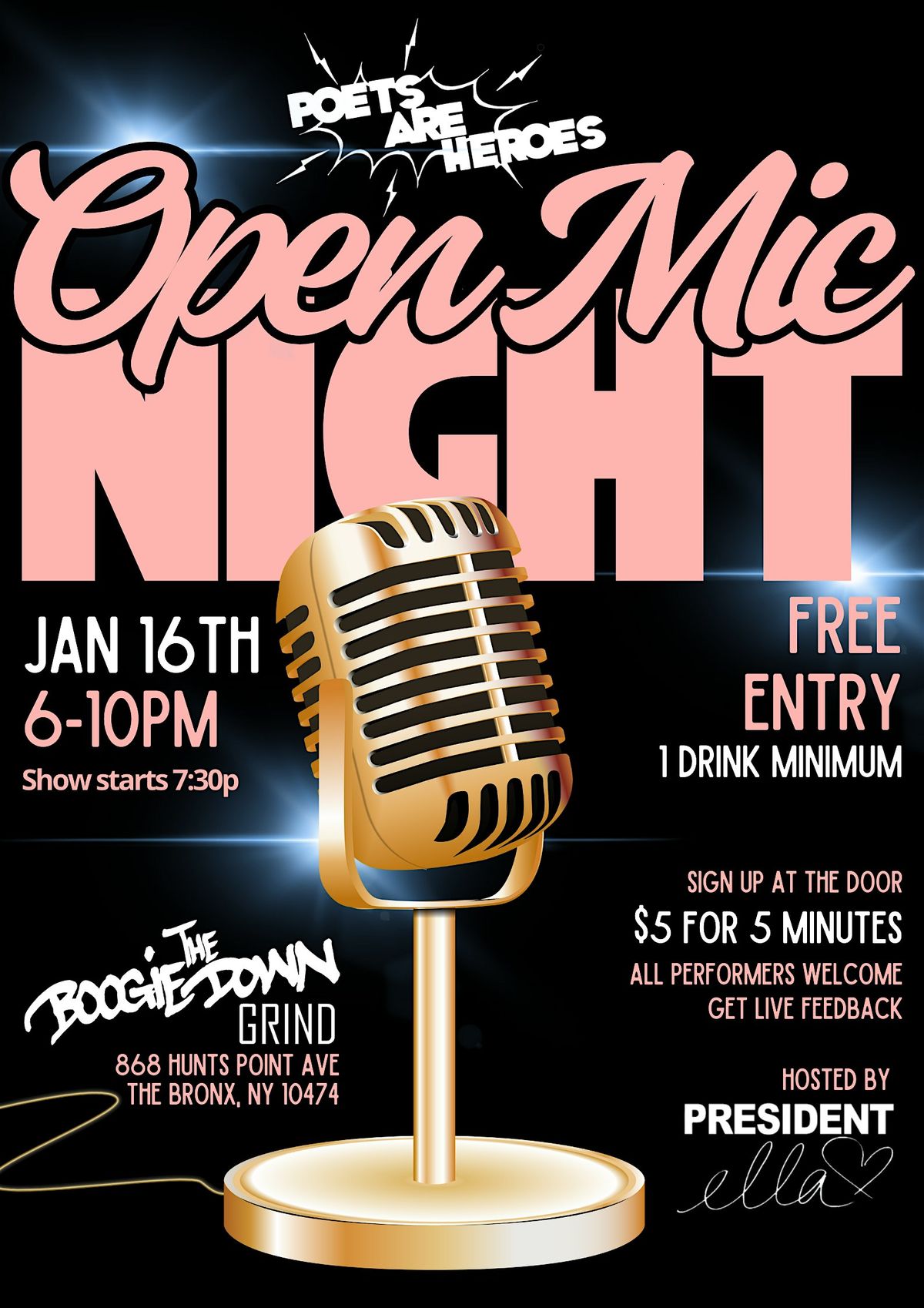 Join us for a MONTHLY open mic at @BOOGIEDOWNGRIND in Hunts Point, NYC. Just steps away from the 6 Train!