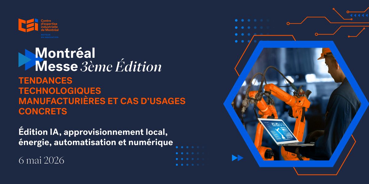 Montréal Messe est le rendez-vous annuel du CEI Montréal pour les entreprises manufacturières qui veulent s’informer, s’outiller et accélérer leur transformation. Pour cette nouvelle édition, nous rassemblons en un même lieu les acteurs clés de l’écosystème industriel afin de favoriser les échanges, le partage d’expertise et la découverte de solutions concrètes adaptées à la réalité du terrain.