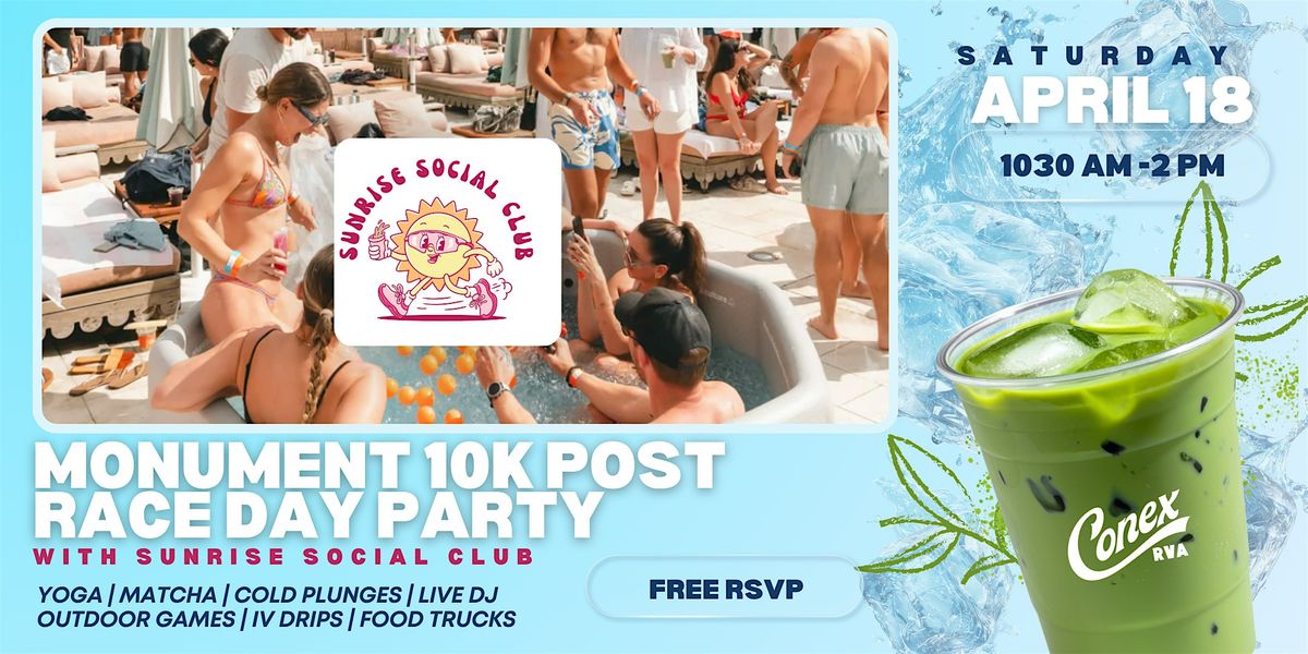Join us at Conex RVA on April 18, 2026 at 10:30 AM (Eastern Time) for the ultimate post-race celebration! Whether you crushed the 10K or just want to hang out, come enjoy good vibes, tasty treats, and great company. It's the perfect way to kick back and relive the race moments with fellow runners and friends. Don’t miss out on the fun and festivities!