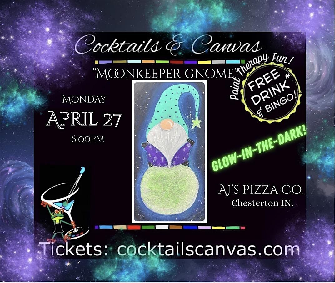 Join us for the Moon Keeper Gnome Cocktails & Canvas event, where creativity meets good vibes. Sip on tasty cocktails as you paint your own glowing masterpiece in an in-person session full of laughs and cool art. Perfect for friends, date nights, or solo fun. Let your imagination shine bright in this unique Paint & Sip experience. Don’t miss out on the glow-up!