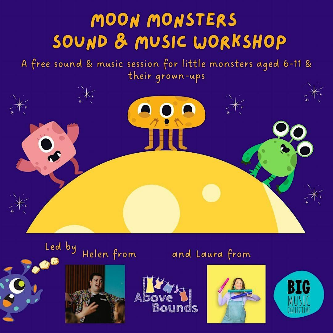 Calling all little monsters aged 6-11 and their grown-ups! Join Helen from Above Bounds Theatre and Laura Loft of Big Music Collective for a FREE fun, relaxed sound and music workshop, where you can help us to decide what Moon Monsters sound like.