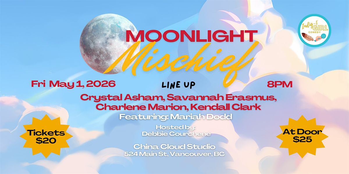 Laugh out loud with Moonlight Mischief! IndigE-girl Comedy brings Vancouver's top Indigenous women, LGBTQIA12S+ & non-binary comic together.