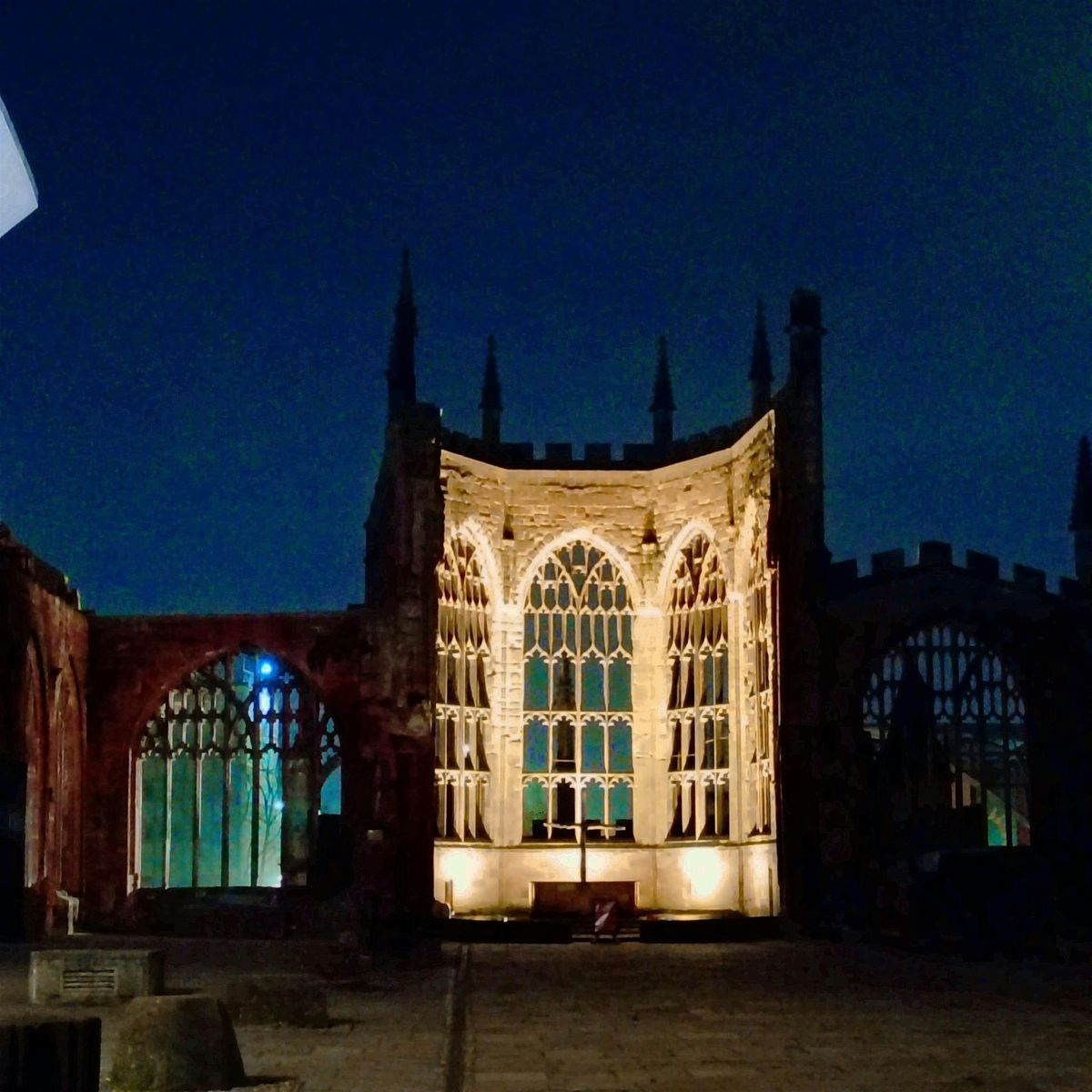 As the city settles and the streets fall quiet, your guide leads you on a slow, reflective journey through Coventry’s historic centre. You’ll wander past softly lit medieval buildings, peaceful courtyards, and the atmospheric Cathedral Ruins, pausing often to breathe, observe, and take in the stillness of the night.