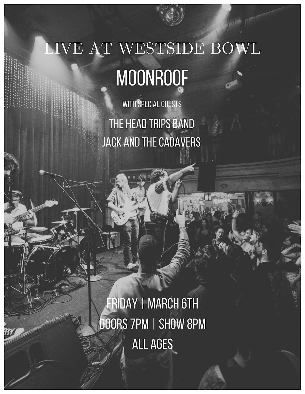 Join us at the Westside Bowl for the return of Moonroof with The Head Trips and Jack and the Cadavers!