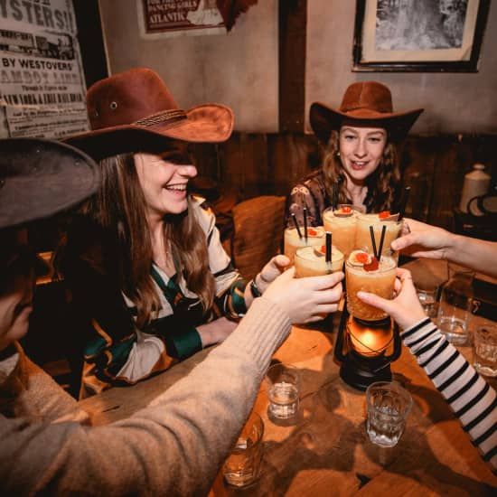 ⭐ Become a bootlegger at Moonshine Saloon and enjoy delicious cocktails crafted with liquor from Clyde Cassidy’s bootlegging empire Highlights 🏜️ Step into an immersive Wild West experience 🍹 Enjoy 4 specialty cocktails crafted by our expert mixologists 🍷 Don't feel like cocktails? Beer, wine, and mocktail substitutions are now available 👗 Dress code: you’ll be given Western clothes to fit right in and avoid the Sheriff’s prying eyes 🤝 Interact with live actors 🤠 Deal cards and roll the dice with fellow outlaws for some good old-fashioned entertainment 🎉 Ultimate group experience, perfect for celebrating birthdays, bucks/hens, team bonding or private events! 👉 For special occasion bookings (including birthdays, bucks/hens parties, and corporate events) of 30+ people, please visit this page General Info 📅 Dates and times: select your date & time directly in the ticket selector ⏳ Duration: 1hr 45mins 📍 Location: 123 Gotha St, Fortitude Valley 👤 Age requirement: 18+ with valid ID ♿ Accessibility: the venue is wheelchair accessible ❓ Please consult the FAQs of this experience here Description Behind the swinging doors, things are not always as they seem: step into Brisbane’s hidden underworld at Moonshine Saloon , where you’ll mingle with locals, play games, and sip on expertly crafted specialty cocktails. Dressed in a Western wardrobe provided by the town’s tailor, you’ll be sure to fit right in. Watch out for the Sheriff, though, if they happen to pass through town… one wrong word is all it takes to bring down Cassidy’s empire! If you prove you can be trusted, you’ll also be treated to a close-up tour of Cassidy’s infamous Moonshine Distillery. Are you ready for the wild west? Get your tickets now for Moonshine Saloon: The Wild West Cocktail Experience in Brisbane!