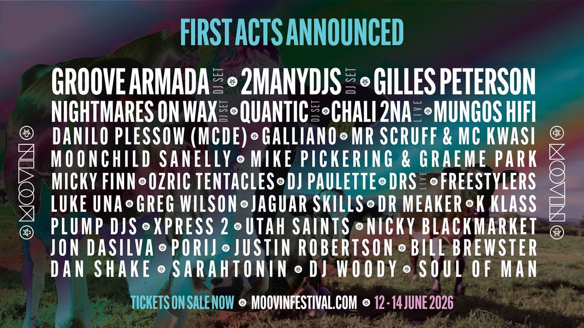 Big names, booming basslines, boutique festival in a bull field...it can only mean one thing... Moovin Festival is back and promises to get you dancing to a music lover's mix of bass, funk, soul, reggae, house and d&b until the cows come home.From a humble beginning, the small cow barn party that started with a few hundred people has organically grown to completely selling out last year and has now well and truly established itself as one of the UK's best-loved Boutique festivals.