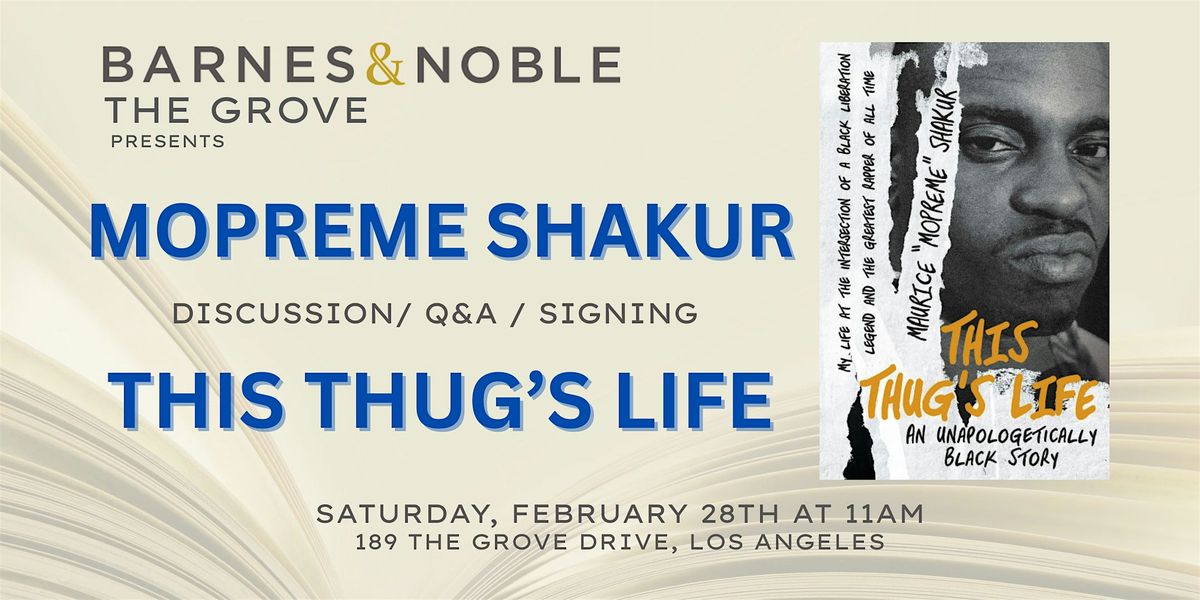 Join on February 28, 2026, at 11:00 am as we welcome rapper to the store to discuss his memoir, . The first-ever insider account of the Shakur family, the iconic hip hop group T.H.U.G. L.I.F.E., and the life and death Tupac Shakur – written by Mopreme Shakur, the legendary rapper’s big brother and eldest son of Black liberation activist Mutulu Shakur.