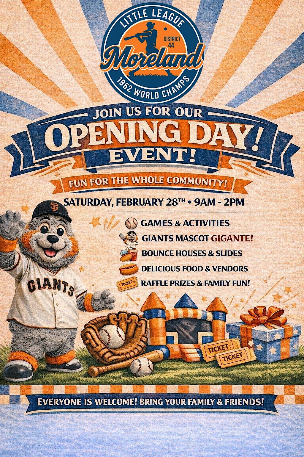Come celebrate our players, teams, and families as we officially launch a new season of Moreland Little League, home of the 1962 World Champions!
