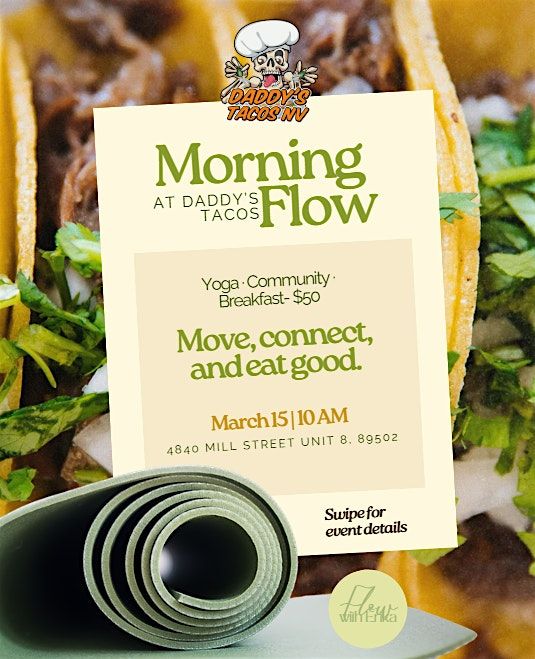 Come join us for a rejuvenating morning of yoga with Erika at Daddy's Tacos NV on March 15, 2026 at 10:00 AM. Let's start the day with some calming yoga poses to stretch and awaken our bodies. After the session, enjoy a delicious breakfast to fuel you up for the day ahead.