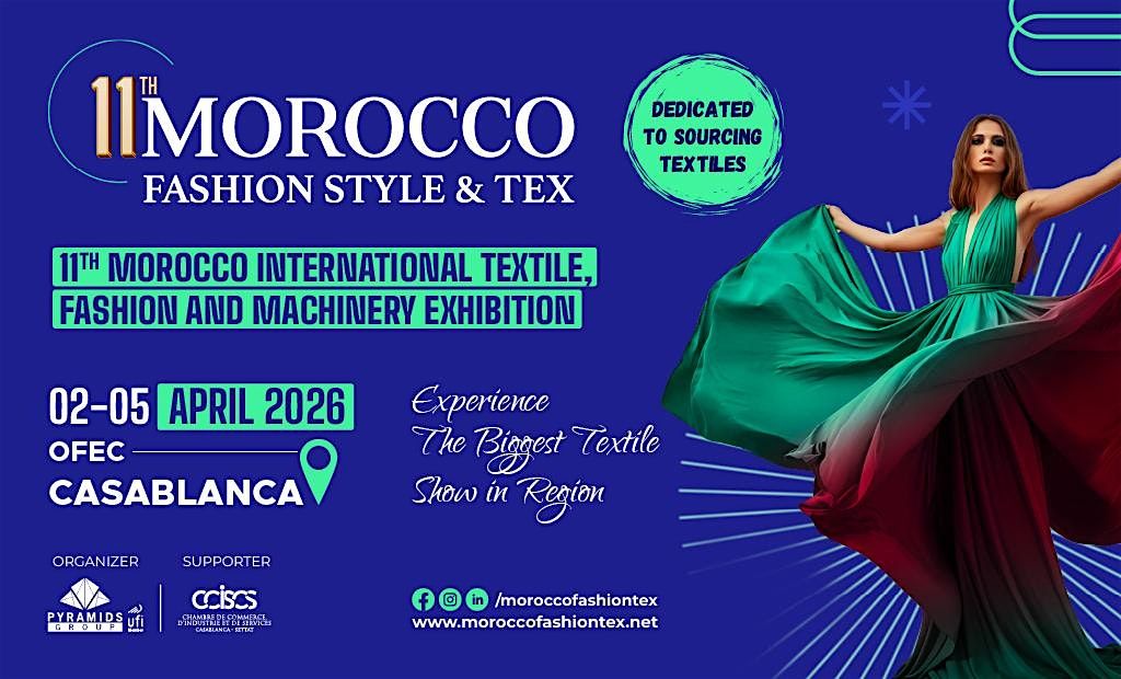 The 11th International Textile, Fashion and Machinery Exhibition is organizing with the participation of 550 exhibitors while gathering 15,794 visitors between April 02nd – 05th, 2026 at the trade hub of Africa, Casablanca Fair and Exhibition Office (OFEC). The most prestigious textile manufacturers alongside African and Mediterranean buyers gathers while presenting the latest technology and design textile products with a large wide range of exhibitor products. It is a fully effective show and key hub with its trend seminars, workshops and industry highlights in the region.