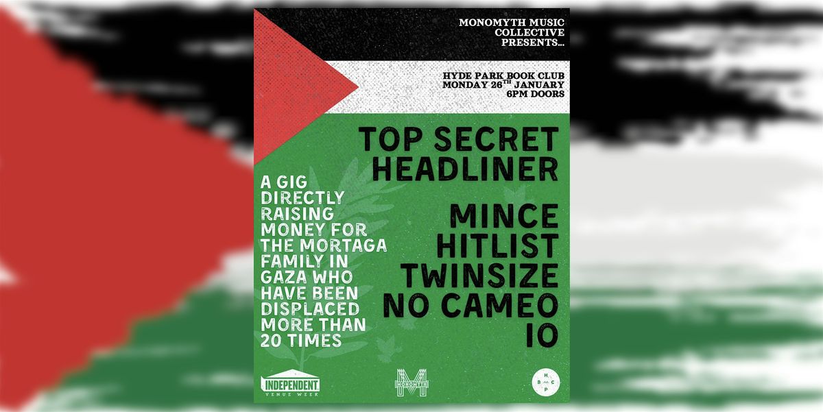 Mince, Hitlist, Twinsize, No Cameo,IO + Top Secret Headliner are playing a benefit show to directly support the Mortaga family in Palestine.