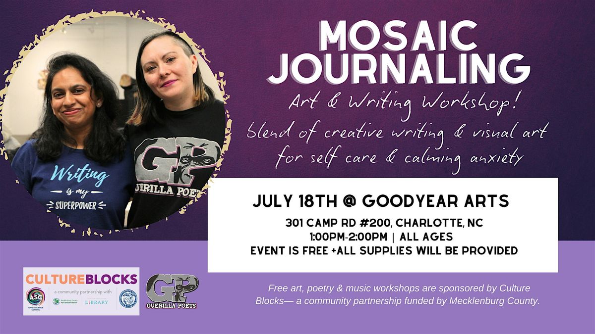 Join us in person for a fun and inspiring Mosiac Journaling Workshop where art meets creative writing! Whether you're a seasoned journaler or just curious, this session will spark your creativity and let you express yourself through mixed media and words.