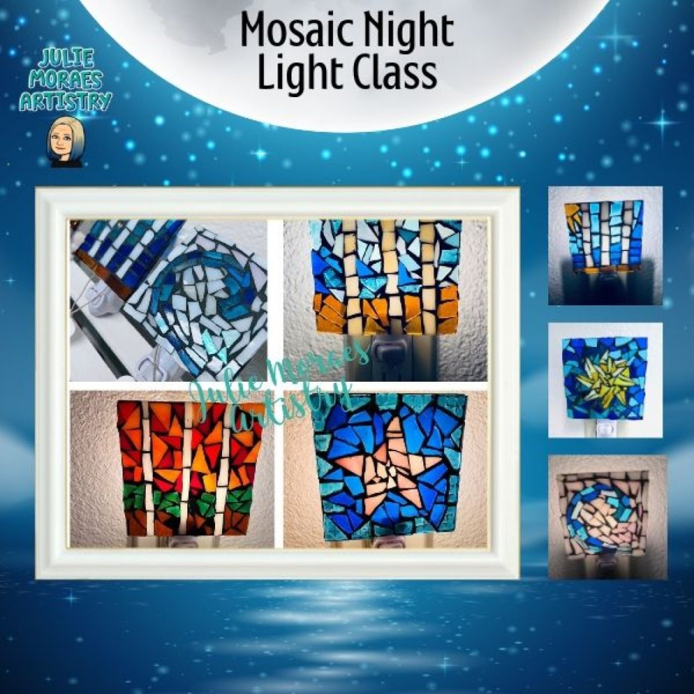In this workshop you will learn how to nip glass out of various colors of stained & painted glass then glue to a clear square acrylic base.