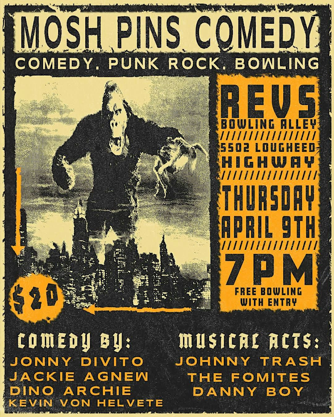 An event unlike Burnaby has ever seen before -- stand up comedy, punk rock music, and two rounds of bowling all for only $20!
