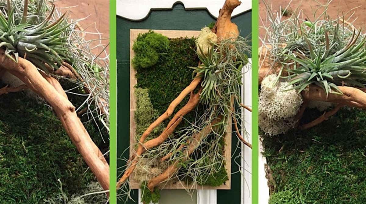 In this workshop, you will create a moss art in a A4 size frame with driftwood, an air plant, Spanish moss, a variety of preserved moss.