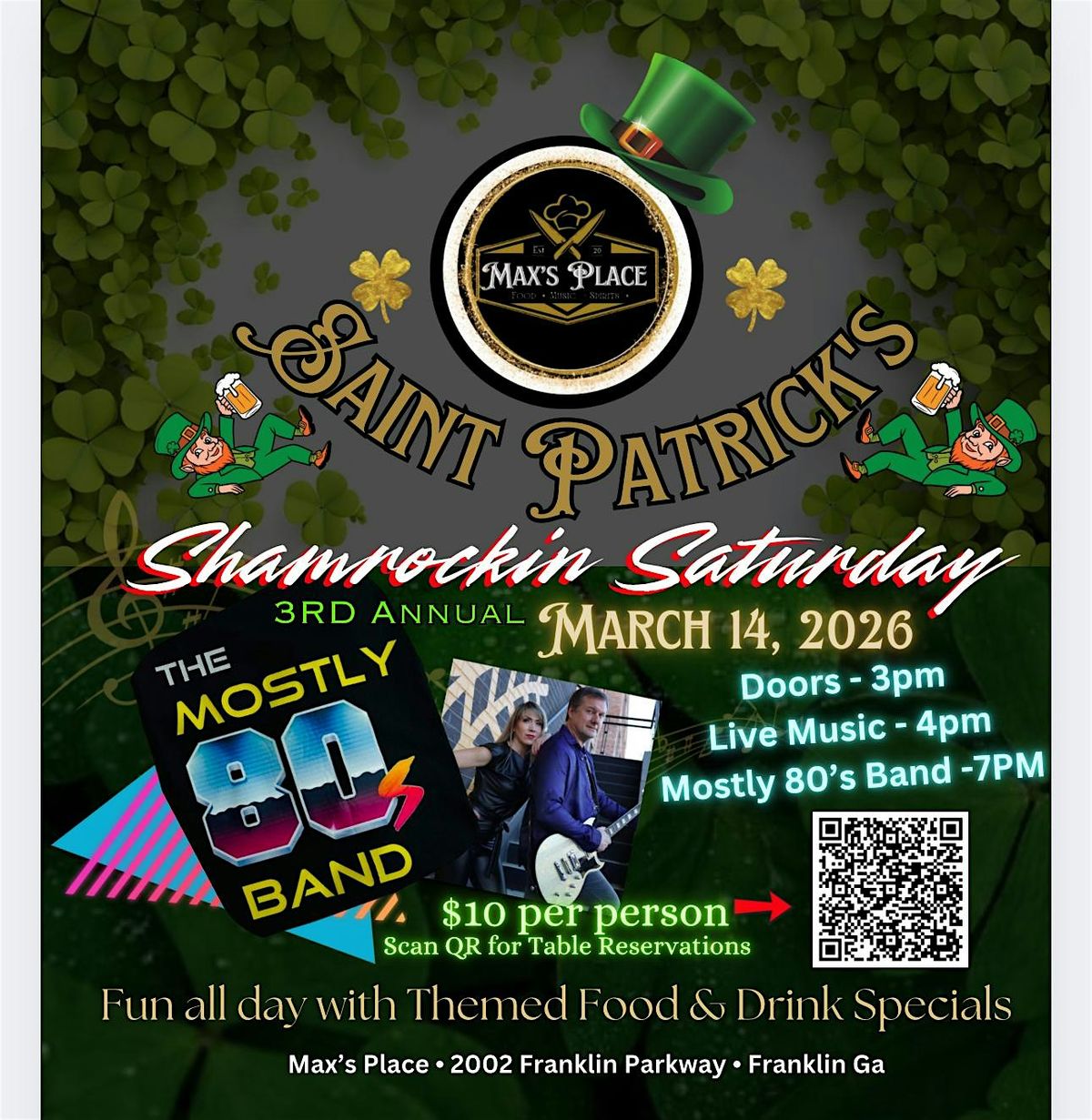 Get ready to rock out with Mostly 80’s Band at Max’s Place for a Shamrockin Saturday blast in 2026!About this Event