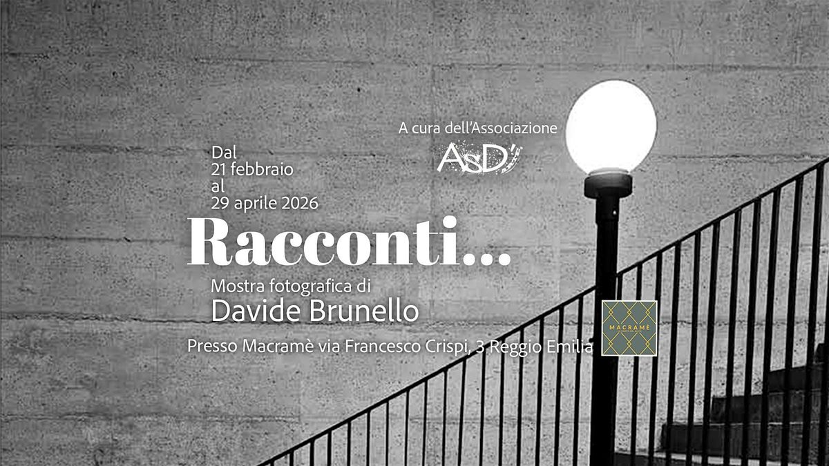 L’Associazione Altro Spazio D’Arte presenta "Racconti..." la mostra fotografica di Davide Brunello, dal 21 febbraio al 29 aprile 2026 presso il locale Macramè a Reggio Emilia.