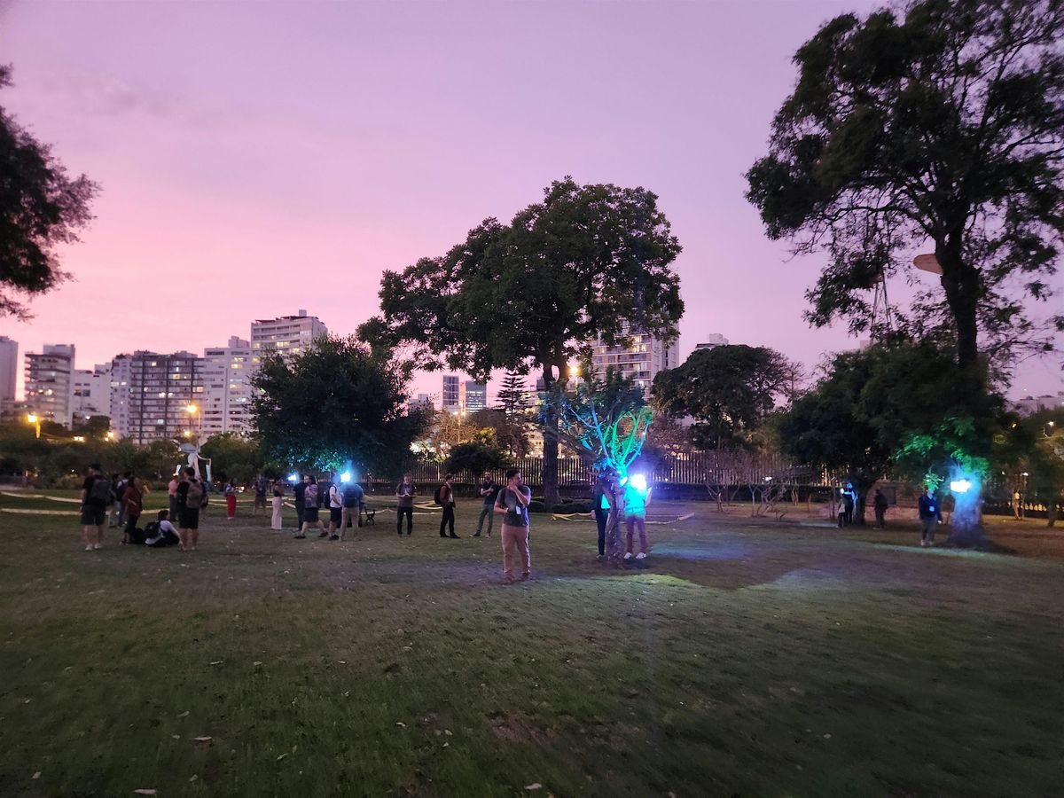 These lights in the park will also add to the atmosphere of the outdoor MOTHRAVE. We will also set up music and projectors to have a dance party with a VJ showing cool insect data. Participants from the workshop will be invited to play with the insect data and VJ.