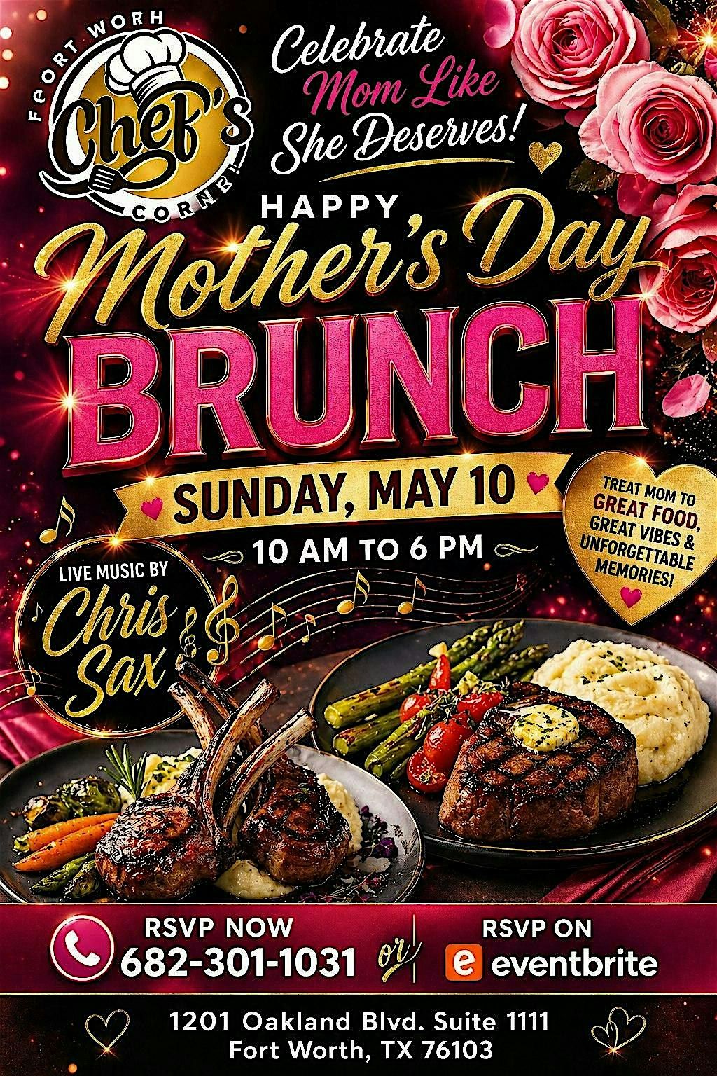 Come celebrate Mother’s Day with a delicious brunch at Chefs Corner, located at 1201 Oakland Blvd ste 1111. Join us on May 10, 2026 at 10:00 AM (Central Time) for a relaxed and tasty way to show some love to mom. Bring your family and enjoy great food and good vibes in person. We can’t wait to see you there!