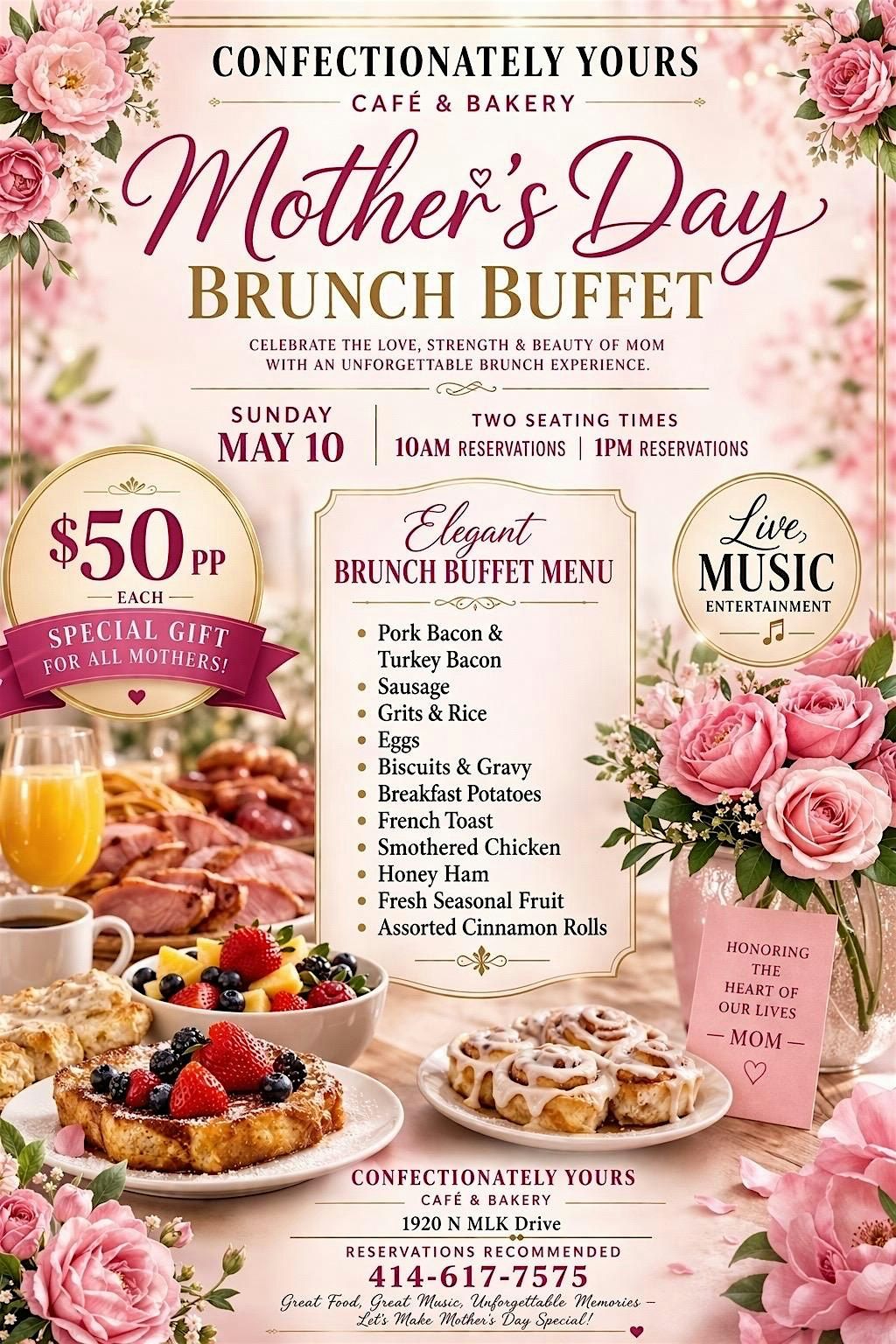 Celebrate Mom with sweet bites and smooth jazz vibes at our Confectionately Yours Mother’s Day brunch! 1920 N MLK DrAbout this Event