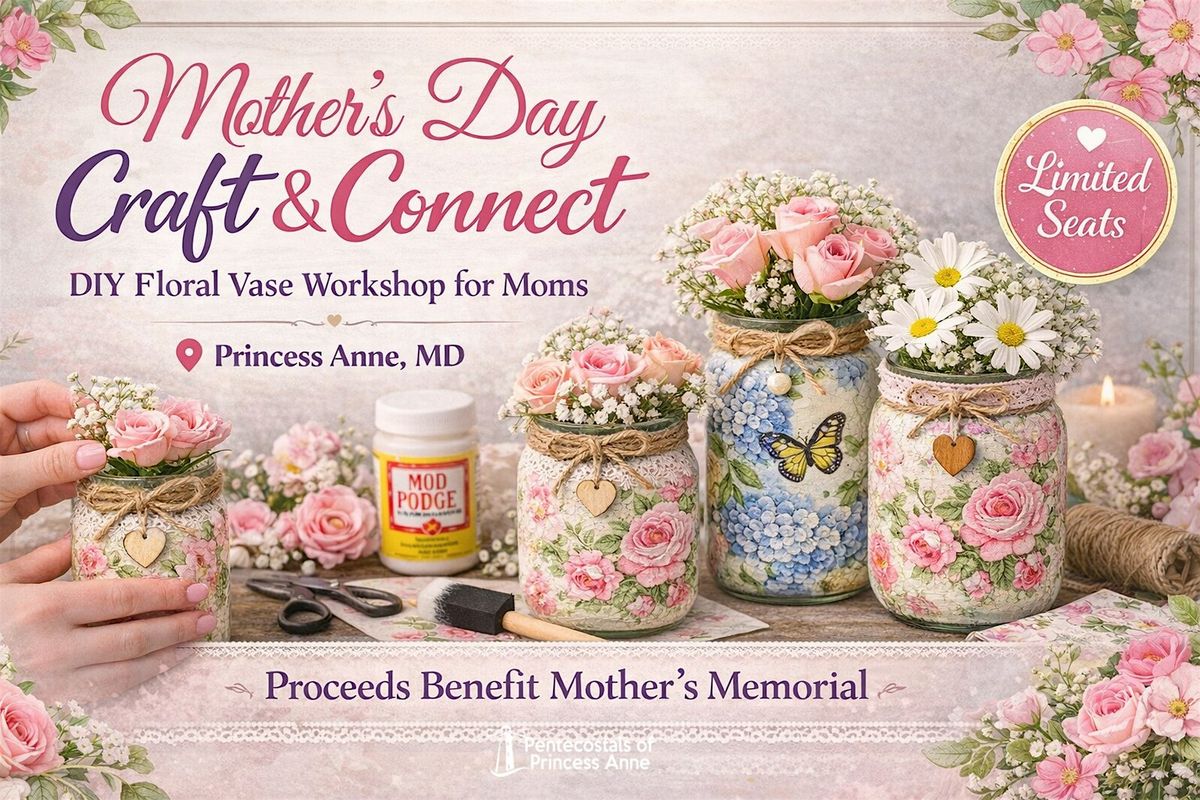 Join us for Mother’s Day Craft & Connect, where local moms and women will come together to create stunning DIY floral vase arrangements while enjoying a peaceful and uplifting atmosphere.
