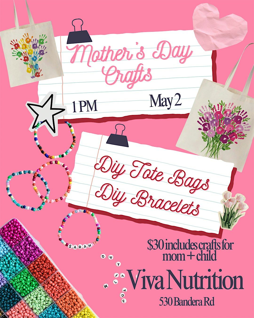 Mother’s Day crafts at Viva Nutrition! Paint tote bags & make bracelets as sweet handmade gifts. Join us at 1 PM!About this Event