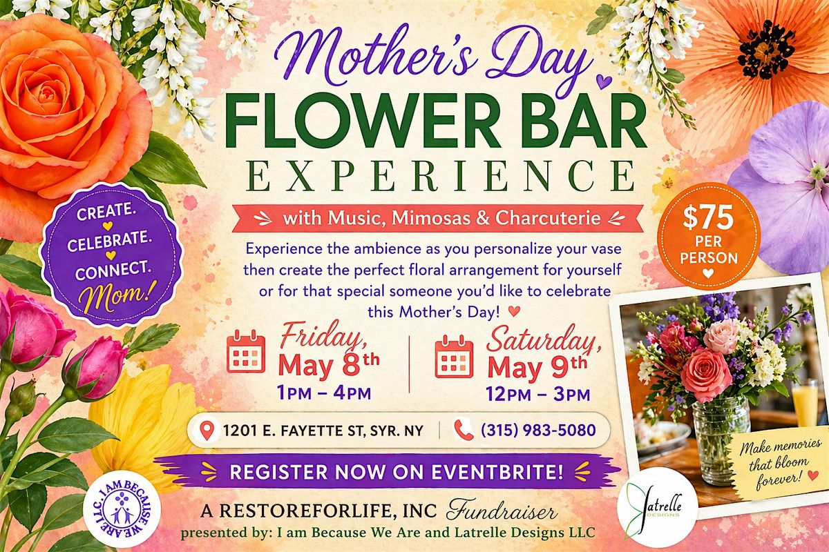 Join us for a beautiful and joy-filled Mother’s Day Flower Bar Experience—a space to relax, connect, and create something meaningful with your hands and heart. Whether you’re coming with your mom, auntie, grandmother, sister, or chosen family, this experience is all about honoring love, connection, and creativity.