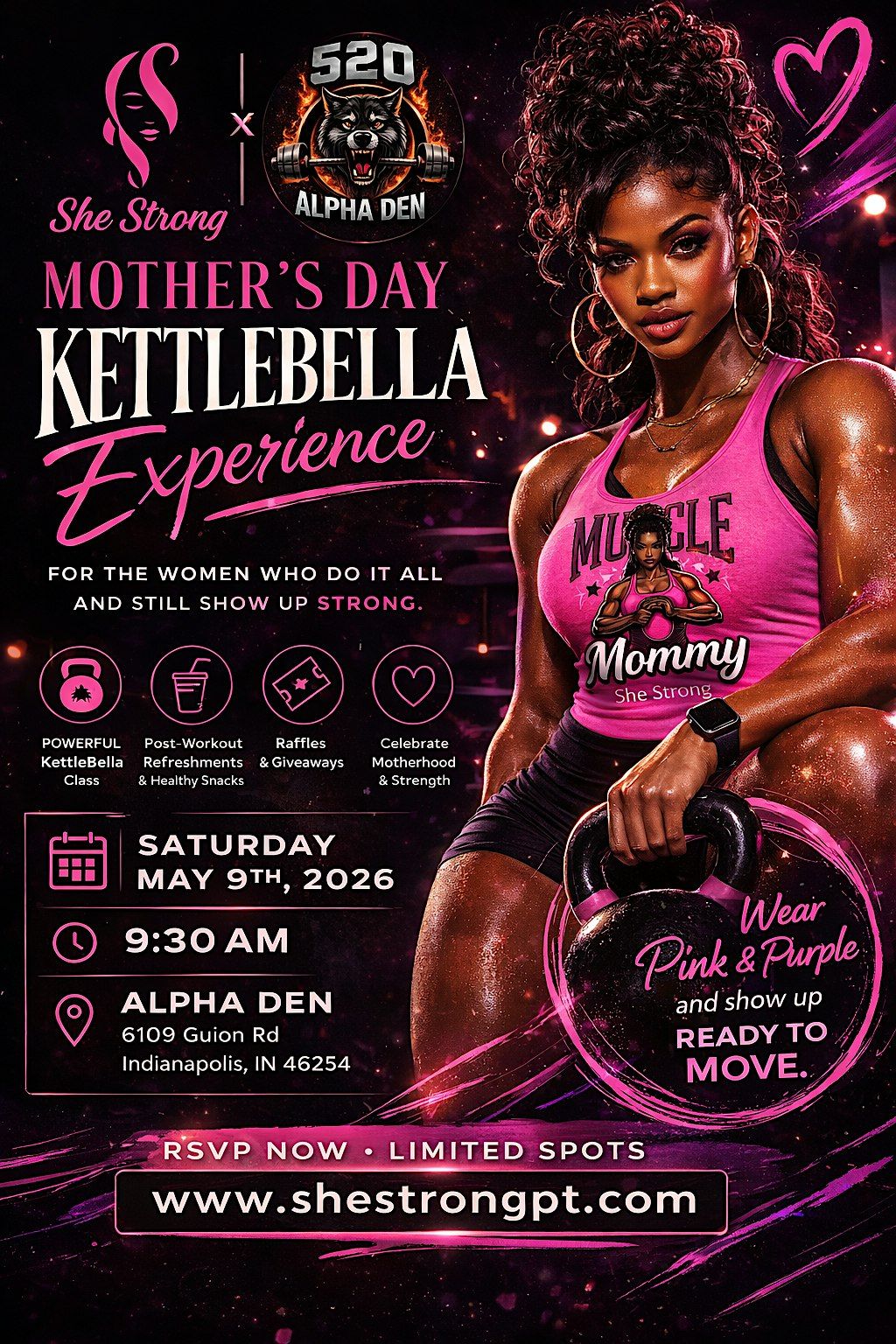 Join She Strong x Alpha Den for a Mother’s Day KettleBella Experience—a high-energy, empowering workout designed to challenge you, uplift you, and remind you exactly who you are.