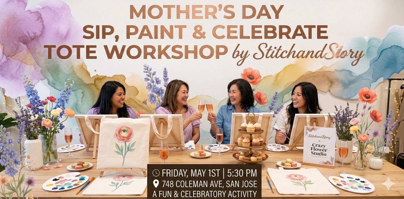 Join us at Crazy Flower Studio on Friday, May 1, 2026, at 5:30 PM for a fun and relaxed evening! You’ll get to customize and paint your own canvas tote bag while sipping your favorite drink and enjoying some sweet treats. It’s the perfect way to kick off Mother’s Day celebrations with creativity and good vibes. Bring your mom, your friends, or come solo—either way, it’s all about having a great time and making a masterpiece you can use every day!