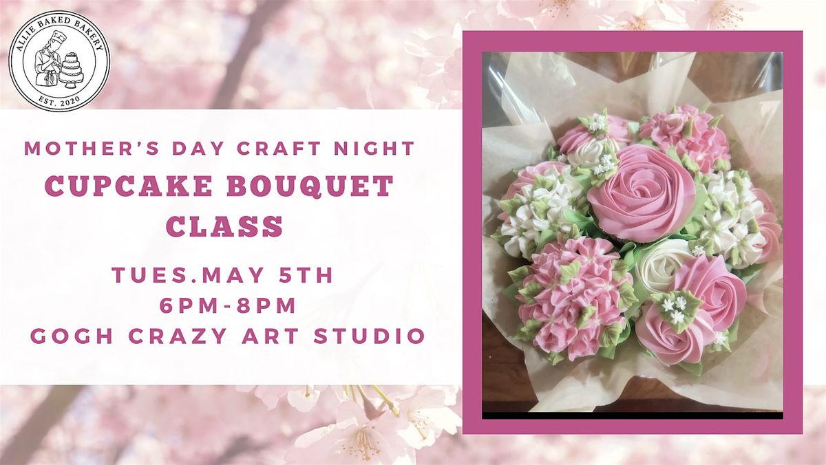 Spring has sprung and it's time to celebrate the moms and motherly figures in our lives! Bring them to this class, or take this class, and create a surprise cupcake bouquet for them! In this class, students will learn how to pipe buttercream flowers, using several different piping tips and couplers. Students will also learn how to construct the bouquet that holds the 7 chocolate or vanilla cupcakes. We will be gift wrapping the bouquets as well!