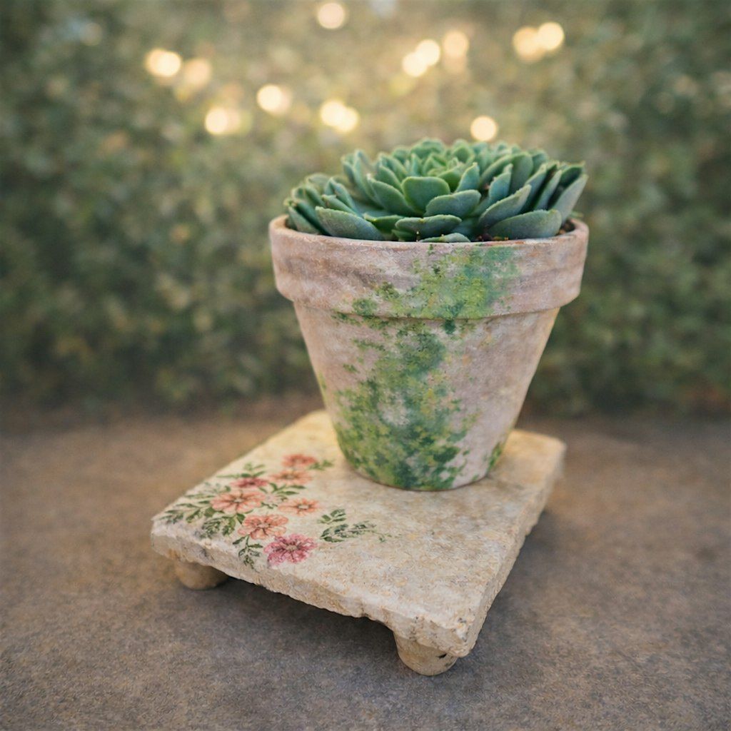 In this Craft & Connect workshop, you'll create a beautifully weathered terracotta pot with a soft, moss-inspired finish, paired with a handcrafted plant stand made from natural travertine stone and decorated with floral transfers.