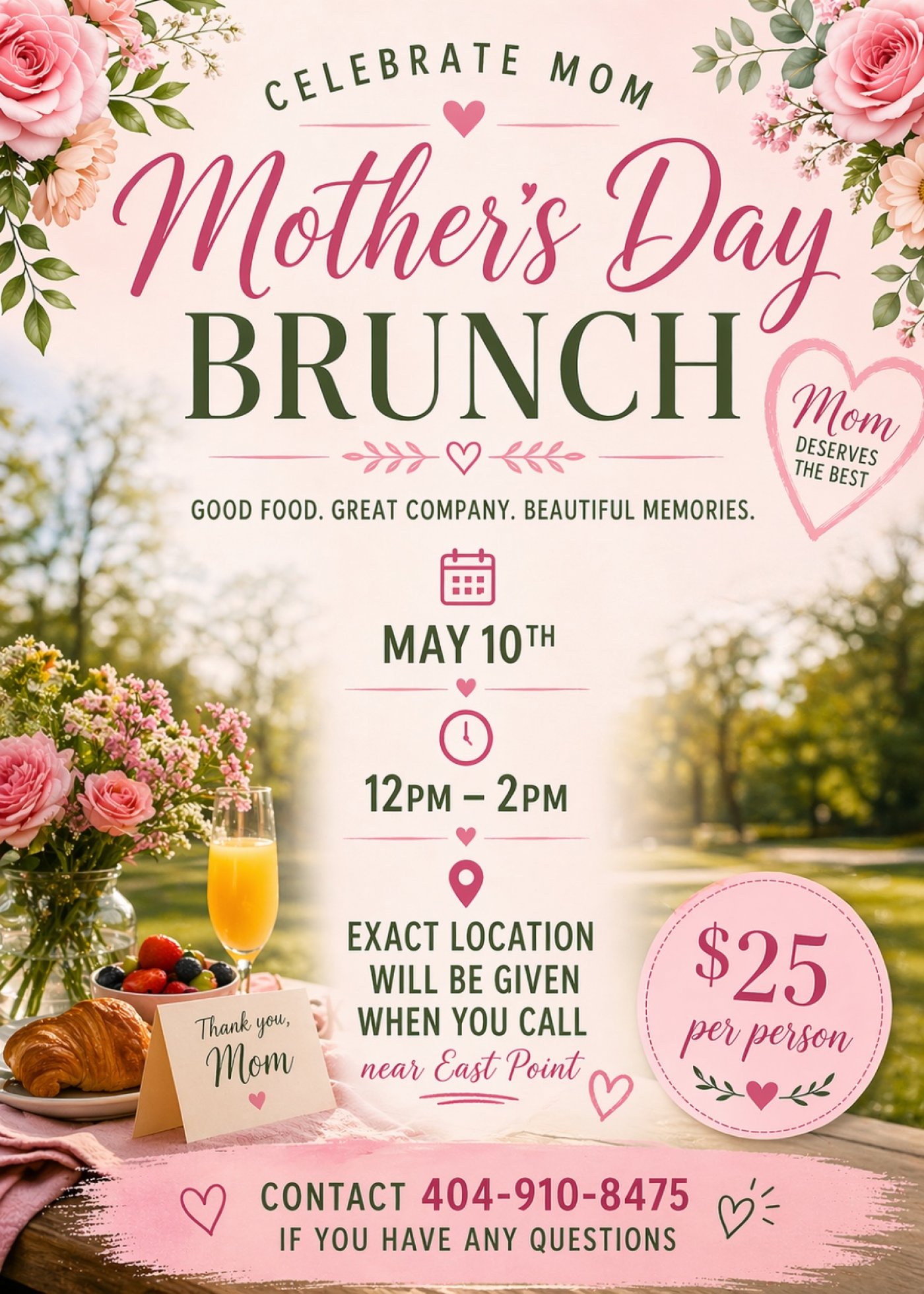 Celebrate the most important women in your life at our enchanting Mother's Day Brunch hosted by Diverse Talented! Join us on May 10, 2026, at 12:00 PM in East Point, GA, USA, for a splendid gathering filled with love, laughter, and delectable delights.
