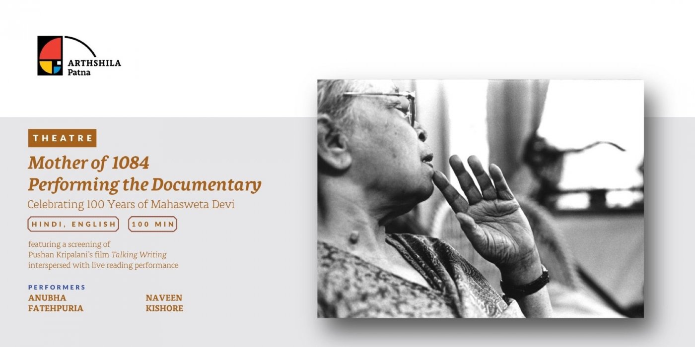 Anubha Fatehpuria and Naveen Kishore come together to ‘perform’ a very personal documentary attempting to explore the special relationship that Mahasweta Devi enjoyed with the lives that peopled her writing and the people that fueled her activism. In a series of four conversations on the screen from the film entitled Talking Writing, directed by Pushan Kripalani, interspersed with live readings performed by Anubha and Naveen from her writing, her interviews, Naveen’s poems of our city, more conversations, we revisit her life in a ‘travelogue’ that weaves in and out of her story—a young woman writer trying to make her mark in a male dominated publishing world, coming to age both as a wife and a mother, a relationship with her once-estranged son—and the story of a nation in the throes of a freedom struggle, the realization that freedom is a privilege for the haves while the have-nots merely change masters in their struggle against slavery, the choice to actively oppose all that reeks of injustice, to record through her journalism and her fiction the less-than-human life of the tribals she had spent all her life fighting for, to remember the shoulder-to-shoulder camaraderie of the Left. A vital tapestry creates of the ‘terrain’ of her writing.