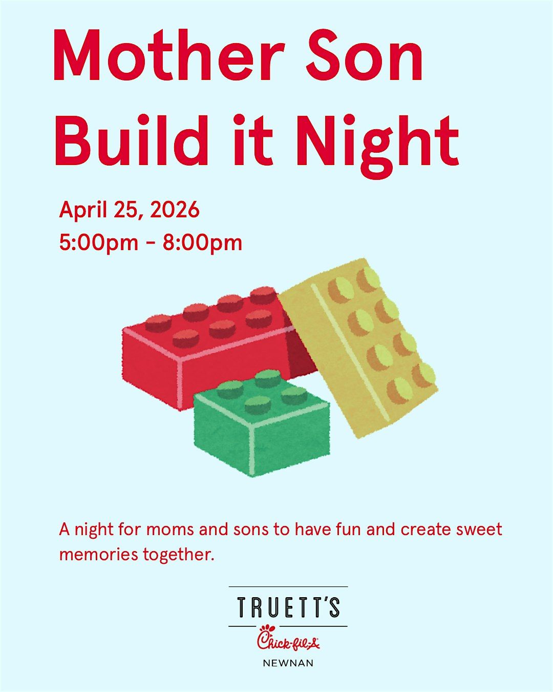 Join us April 25th from 5-8PM for a special evening designed for moms and sons to build, create and make sweet memories together. We can't wait to see the creativity and teamwork come to life! Mothers and sons of all ages are welcome.