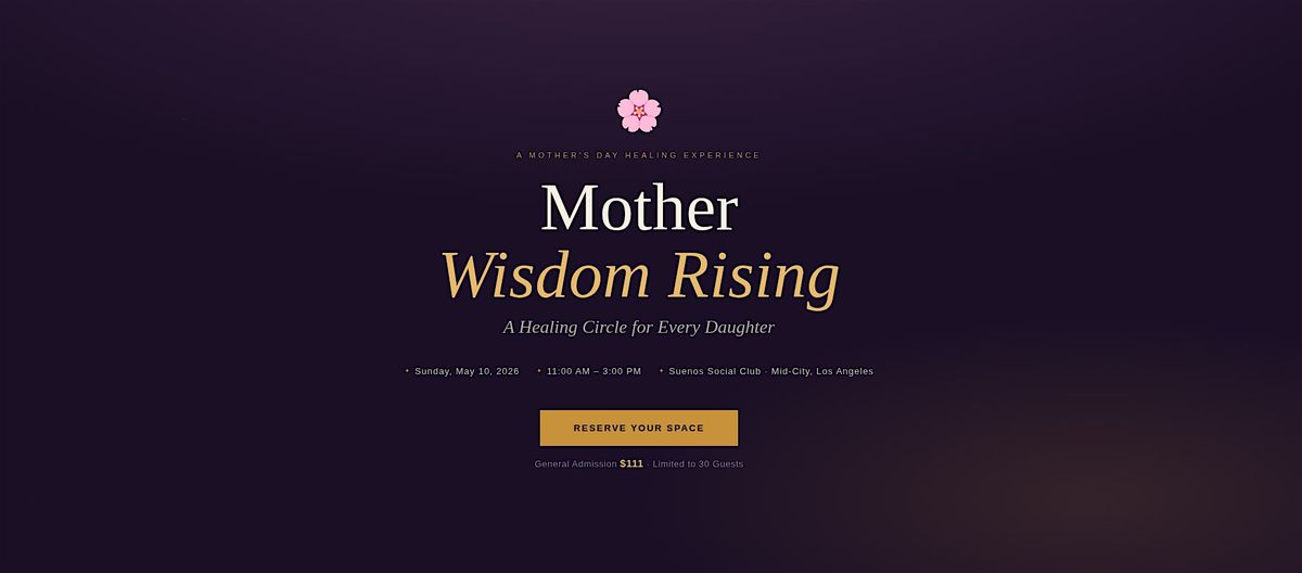 In an intimate gathering of no more than 30 women, we will move together through ceremony, somatic healing, sound, journaling, and community — emerging nourished, witnessed, and reconnected to the mother wisdom that lives within each of us.