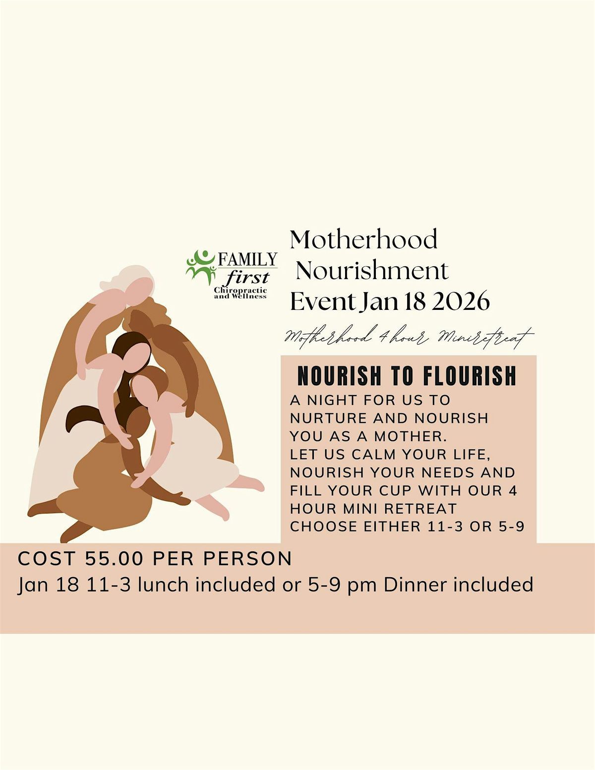 This evening is dedicated to nurturing and supporting you in your role as a mother. Join us for a 4-hour mini motherhood retreat designed to calm your life, tend to your needs, and replenish your spirit. This is for mothers for children of all ages, infant, toddlers, school age and teenagers.