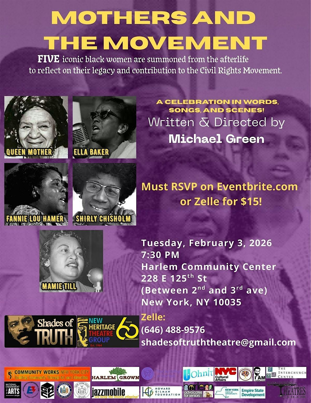 MUST RSVP $15 ON EVENTBRITE.COM OR ZELLE PAYMENT (646 488 9576 OR [email protected]) !