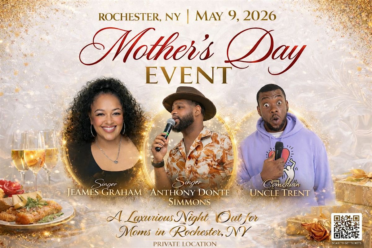 Mother’s Day: A Night for Moms An Adults-Only Luxury Experience | Rochester, NY This Mother’s Day, step away from the noise, the responsibilities, and the daily routine… and step into a night created just for YOU. Mother’s Day: A Night for Moms is a beautifully curated, adults-only evening designed for mothers who deserve a break, a breath, and a moment to simply enjoy themselves. ✨ No cooking ✨ No cleaning ✨ No kids calling your name Just good food, great music, laughter, drinks, and an unforgettable experience. 🌙 The Experience From the moment you walk in, you’ll be welcomed into a warm, elegant atmosphere filled with energy, connection, and relaxation. Enjoy a night of: 🎨 Painting with a Twist (Paint & Sip) 🍽️ A full-course dinner experience 🍹 Alcoholic & non-alcoholic drinks 🎶 Live music performances 😂 Comedy entertainment 🎁 Mother’s Day gifts 🎟️ Raffle prizes 📸 Photo booth moments This is more than an event — it’s a reset, a celebration, and a well-deserved escape. 🍽️ Dinner Menu Highlights Indulge in a satisfying and flavorful meal including: Lasagna, Herb Crusted Salmon, Haddock, Garlic Mashed Potatoes, Green Beans, Fresh Salad,Desserts and more!🎤 Featuring Live Entertainment Jeames Graham Anthony, Anthony Donte Simmons, Comedian Chaz Bruce And more 🗓️ Event Details 📅 May 9, 2026 ⏰ 5:30 PM – 9:30 PM 📍 Private Location – Rochester, NY (provided a week before the event) 👗 Dress to Impress ⚠️ Limited seating available Some tickets may be available at the door for last-minute guests, but this event is expected to sell out quickly. 🚨 Don’t Miss This This is your moment. This is your break. This is your night. 💬 Tickets are going fast — secure yours now. ⚠️ Important Notes Adults Only (No children permitted) Private location details will be sent after purchase All sales are final unless event is canceled or rescheduled