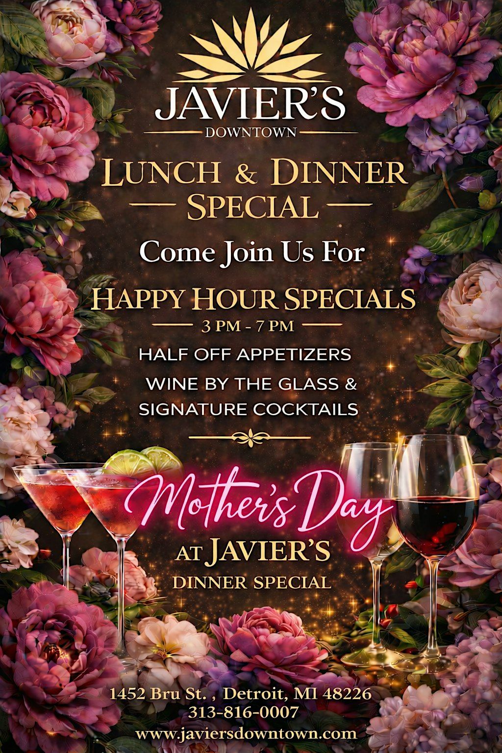 Welcome to Mothers Day At Javier's Downtown - Dinner Special! Join us on May 10, 2026 at 3:00 PM for a delightful dining experience at Javier’s Downtown. Treat your mom to a special meal in celebration of Mother's Day. Indulge in delicious dishes and create lasting memories with your loved ones. Don't miss out on this opportunity to show your appreciation for all that moms do! See you there!