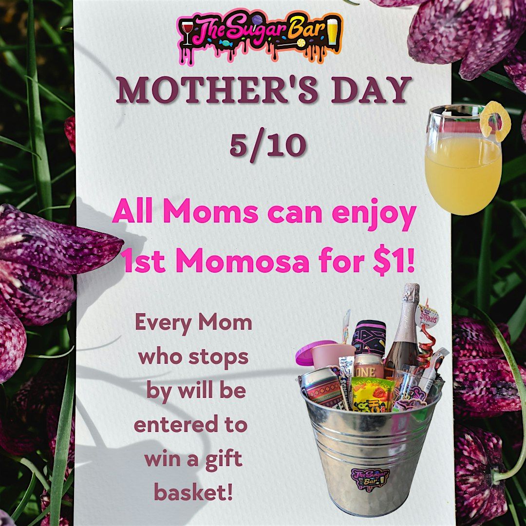 Show some love to Mom this Mother's Day & spend a chill Sunday fun day at The Sugar Bar! All mom's get their 1st Momosa for just $1! We will also be doing a basket giveaway with awesome prizes. Every mom that comes in will be entered to win! Cheers to all the Moms & thanks for all that you do!