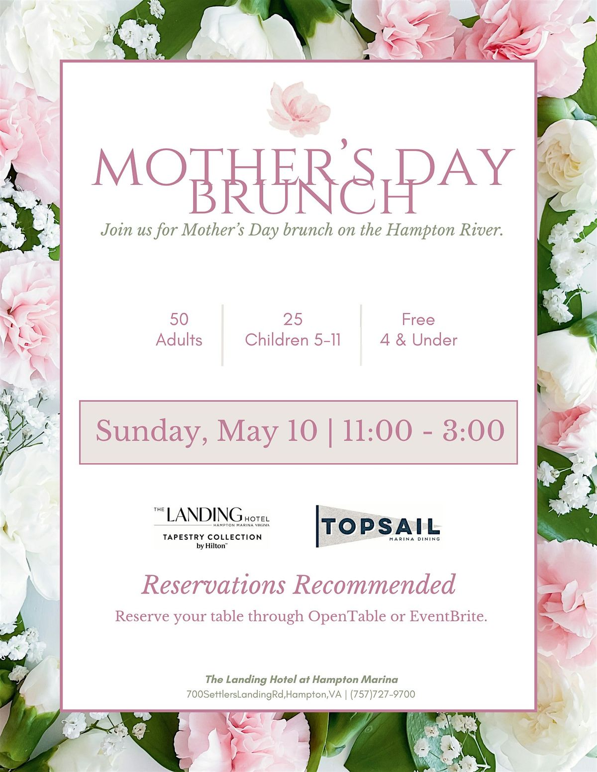 Celebrate Mother’s Day at The Landing Hotel with an elegant brunch experience designed to make Mom feel truly special. Enjoy a delicious spread of savory favorites, decadent desserts, and refreshing beverages in a warm and inviting atmosphere. Gather with family and friends as we take care of every detail, creating a relaxing and memorable celebration for you and your loved ones.