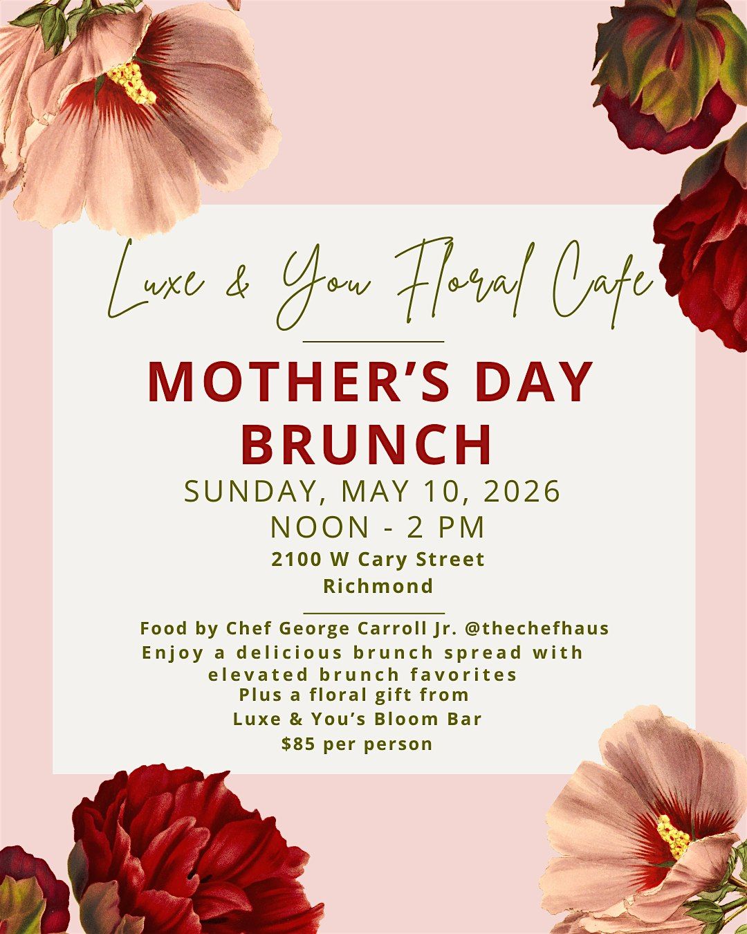 Luxe & You’s Mother’s Day Brunch is happening on Sunday, May 10th from noon to 2 pm. A chef curated meal by Chef George Carroll Jr. (@thechefhaus), live music, and a beautiful floral gift to take home. $85/person. 2100 W Cary Street, Richmond, VA.
